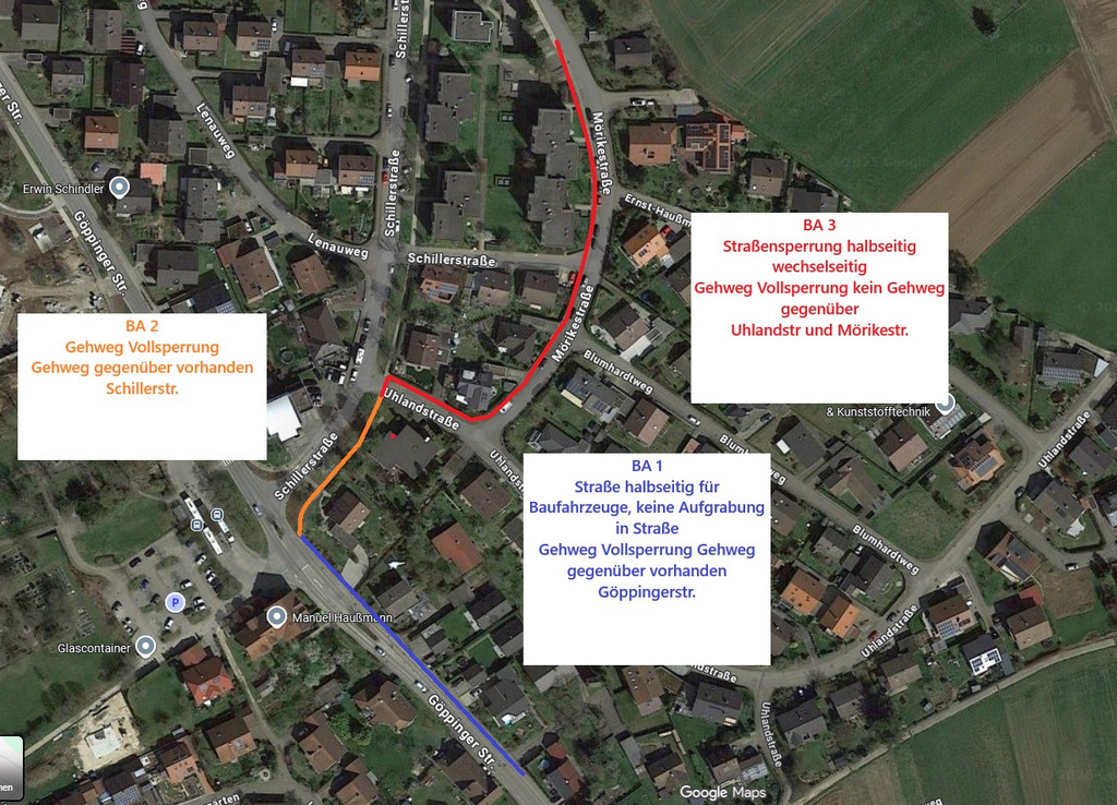 Die Fa. Omexon erneuert im Auftrag der Fa. EnBW das Stromnetz im Bereich der Göppinger, Schiller-, Uhland- und Mörikestraße.